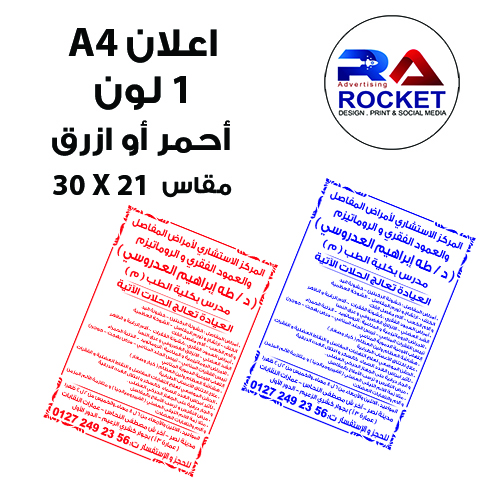 1,150.00 ج.ملون واحد ازرق او احمراو جنجا وجه واحد ورق طبع 80 او 70 جرام